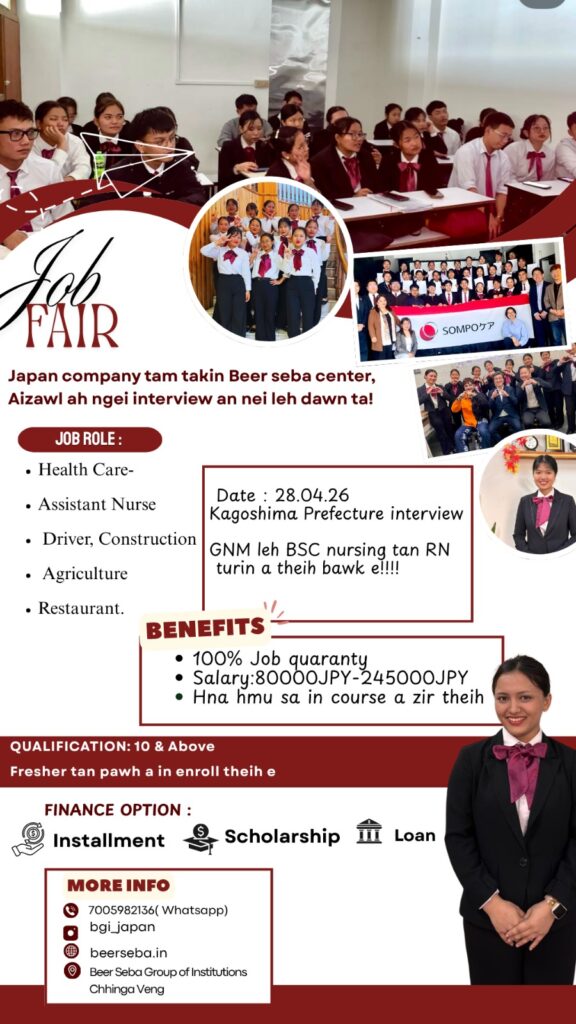 General Duty Assistant (GDA) zir duh tan Beer Seba, Aizawl ah kan hawng mek a, online a B.A, B.Sc., M.A, M.Sc.,M.Com. zir duh tan admission kan hawng mek bawk. Hrechiang duh tan hetah hian hmet rawh